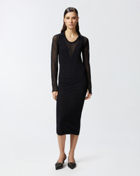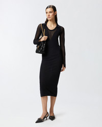 ALEX DRESS − 105154A2LSZ99 Midi-length, mid-calf dress made of very light cotton blend crepe knit with a semi-transparent effect, doubled in some points of the garment. The long-sleeved knit dress is customized with a wide round neckline and collar as well as ribbed trim. The fitted line, the length and the soft light knit with which this dress is made, make it a perfect and versatile total look, to be worn on the most varied occasions. COMPOSITION Outside Fabric: COTTON 85% POLYAMMIDE 15% POLYAMIDE 15% - 1° Outside Fabric: COTTON 85% POLYAMMIDE 15% POLYAMIDE 15%
