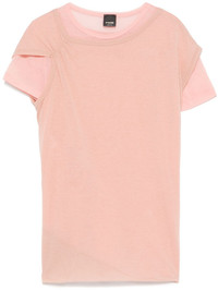 layered T-shirt Highlights - Pink - Crew neck - Short sleeves - Ruched detailing Made in Italy Composition Cotton 70%, Nylon 30% SIZE & FIT Model measurements Height 5 ft 11 in(1.8 m) Bust/Chest 33.07 in(84 cm) Hips 37.4 in(95 cm) Waist 25.19 in(64 cm) FittingInformation Designed for a slim fit that sits just away from the body offering a close yet comfortable fit Made from a lightweight non-stretch fabric, this piece offers minimal elasticity when worn