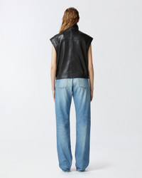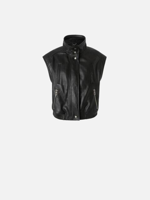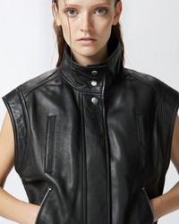 GAMBIA VEST − 103898A21LZ99 Sleeveless biker jacket in soft nappa leather with a high collar fastened with two metal press studs. Vertical welt pockets and zipped side pockets. Covered zip fastening at the front. COMPOSITION Lining: POLYESTER 100% - Leather: SHEEP LEATHER 100% SHEEPSKIN LEATHER 100%