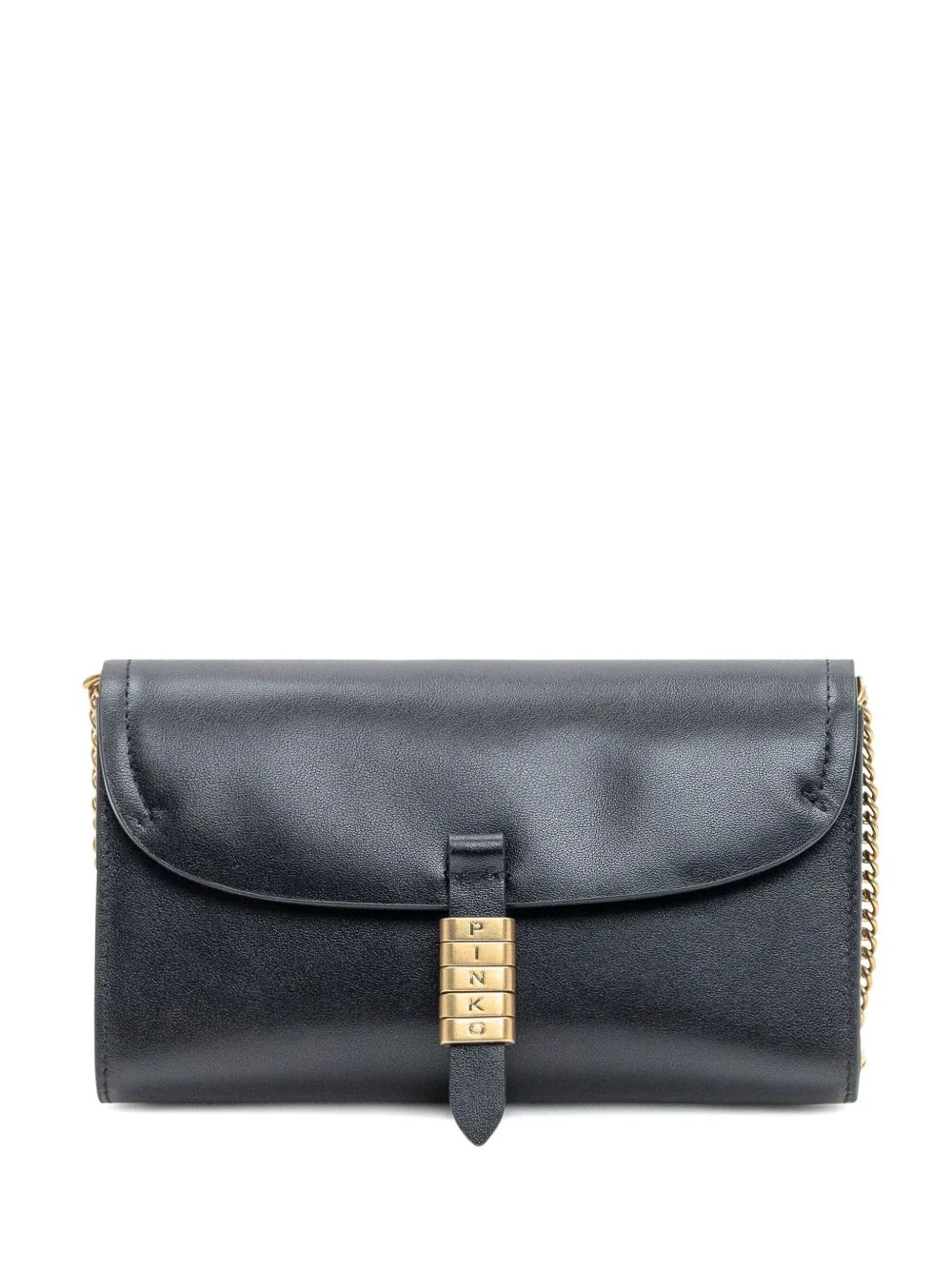 leather chain-strap shoulder bag Highlights - Black - Gold-tone hardware - Chain strap - Front flap - Back slip pocket Imported Composition Outer: Calf Leather 100%, Polyamide 100%, Polyurethane 100% Lining: Cotton 100% SIZE & FIT Measurement DEPTH 1.96 in(5 cm) HEIGHT 4.33 in(11 cm) WIDTH 7.48 in(19 cm)