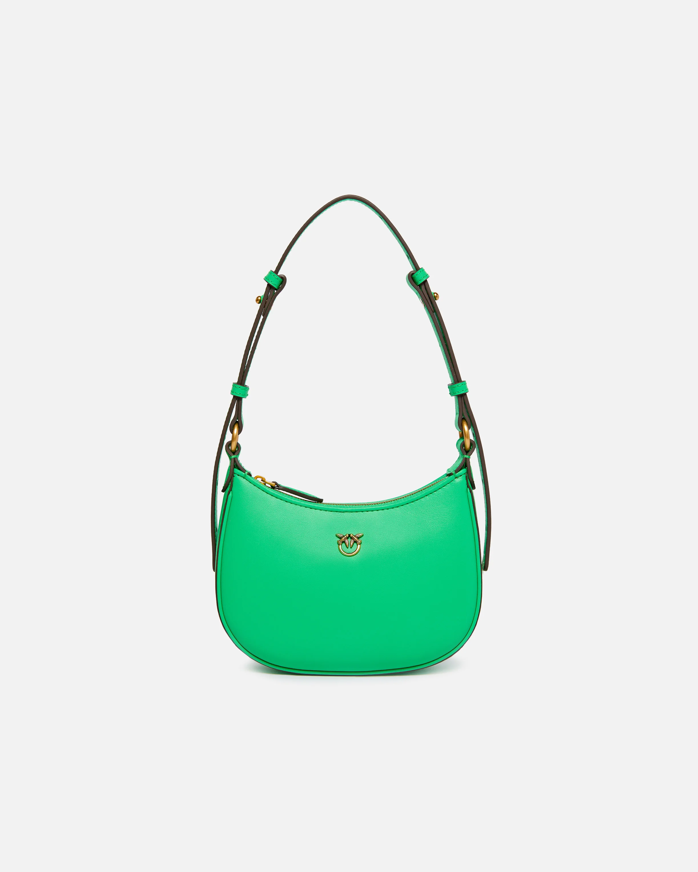 HALF-MOON BABY − 103538A0F1U59Q00001 Half Moon baby shoulder bag in soft, silky leather with smooth texture and custom mini metal Love Birds Diamond Cut plaque. The bag features an adjustable leather strap for shoulder wear or hand carry and features suede-effect fabric lining and a zipped inner pocket. Activate your PINKO bag: verify the authenticity of your product and access a personalised experience by scanning the Love Birds embroidery on the back of the bag with your smartphone! COMPOSITION Leather: CALF LEATHER 100% CALFSKIN LEATHER 100% - Lining: COTTON 100% - Accessory: Zinc 100% MEASUREMENTS - Height: 12 cm - Width: 5 cm - Length: 18 cm