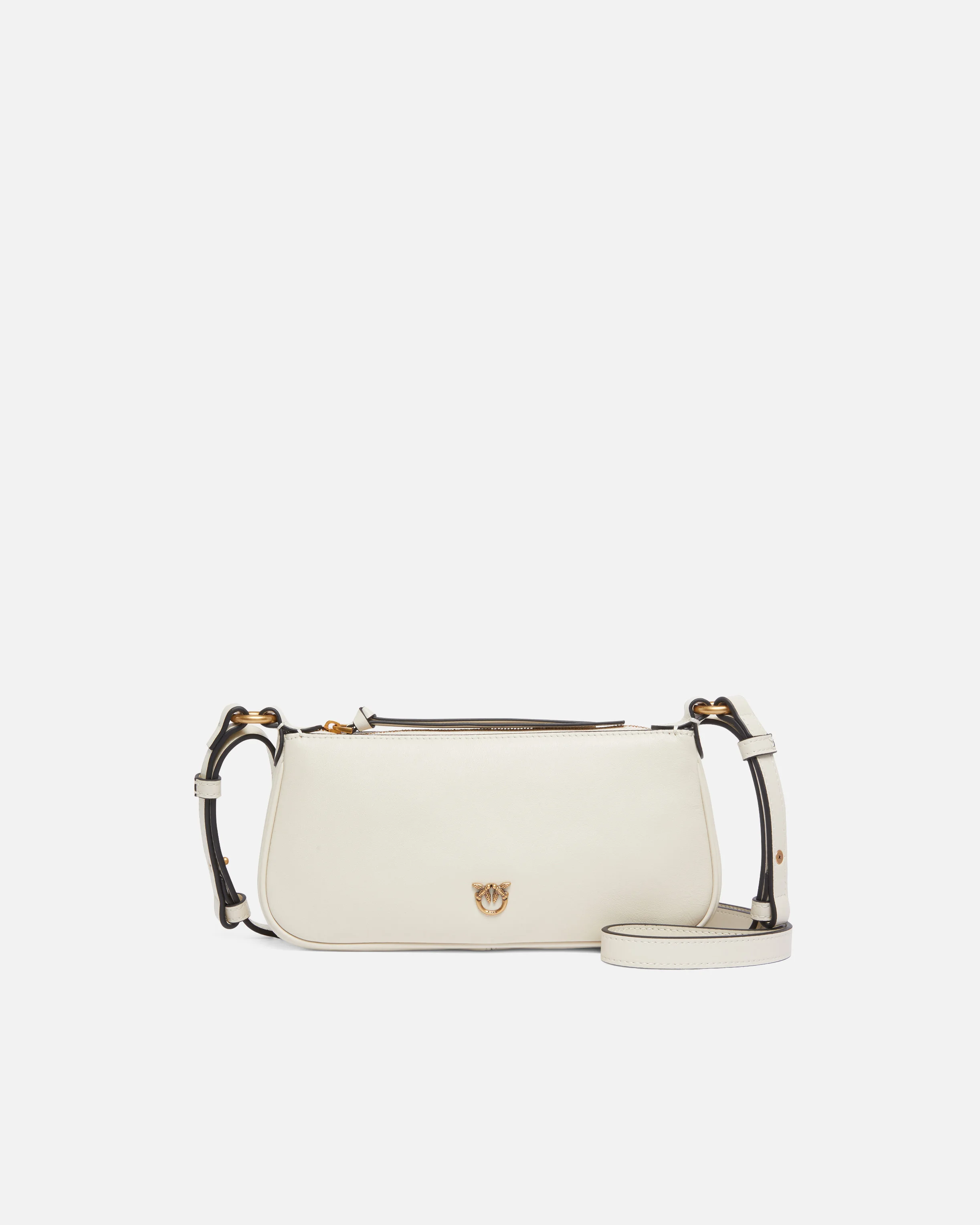 null − 105069A0QOZ14Q00001 Mini Half Moon Baguette bag with a distinctive narrow and elongated rectangular shape, made from soft leather and equipped with a main zip fastening to keep your essentials safe. Featuring an adjustable leather shoulder strap, the bag is extremely versatile and practical for everyday life. The refined design is complemented by the Love Birds logo, which embodies the inimitable style of the brand. Activate your PINKO bag: verify the authenticity of your product and access a personalised experience by scanning the Love Birds embroidery on the back of the bag with your smartphone! COMPOSITION Leather: COWHIDE 100% BOVINE SKIN 100% - Outside Fabric: POLYAMMIDE 60% POLYAMIDE 60% POLYURETHANE 40% - Lining: COTTON 100% MEASUREMENTS - Height: 11 cm - Width: 5 cm - Length: 23 cm