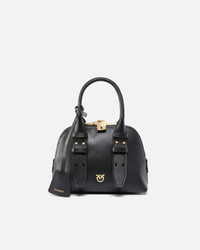 BOWLING BAG ZIP MINI − 105333A0QOZ99V00001 Mini Escape Bag bowling bag in soft leather with a cotton lining and a slip pocket with card slots. Featuring an adjustable leather shoulder strap and double handle so it can be carried by hand or on the shoulder, the bag is extremely versatile and practical. The two-way zip fastening on top is personalised with an original detail: a padlock decorated with the iconic Love Birds logo that can be opened and closed thanks to the key contained in the leather charm that completes the bag. Activate your PINKO bag: verify the authenticity of your product and access a personalised experience by scanning the Love Birds embroidery on the back of the bag with your smartphone! COMPOSITION Leather: COWHIDE 100% BOVINE SKIN 100% - Outside Fabric: POLYURETHANE 100% - Lining: COTTON 100% MEASUREMENTS - Height: 25 cm - Width: 10 cm - Length: 20 cm