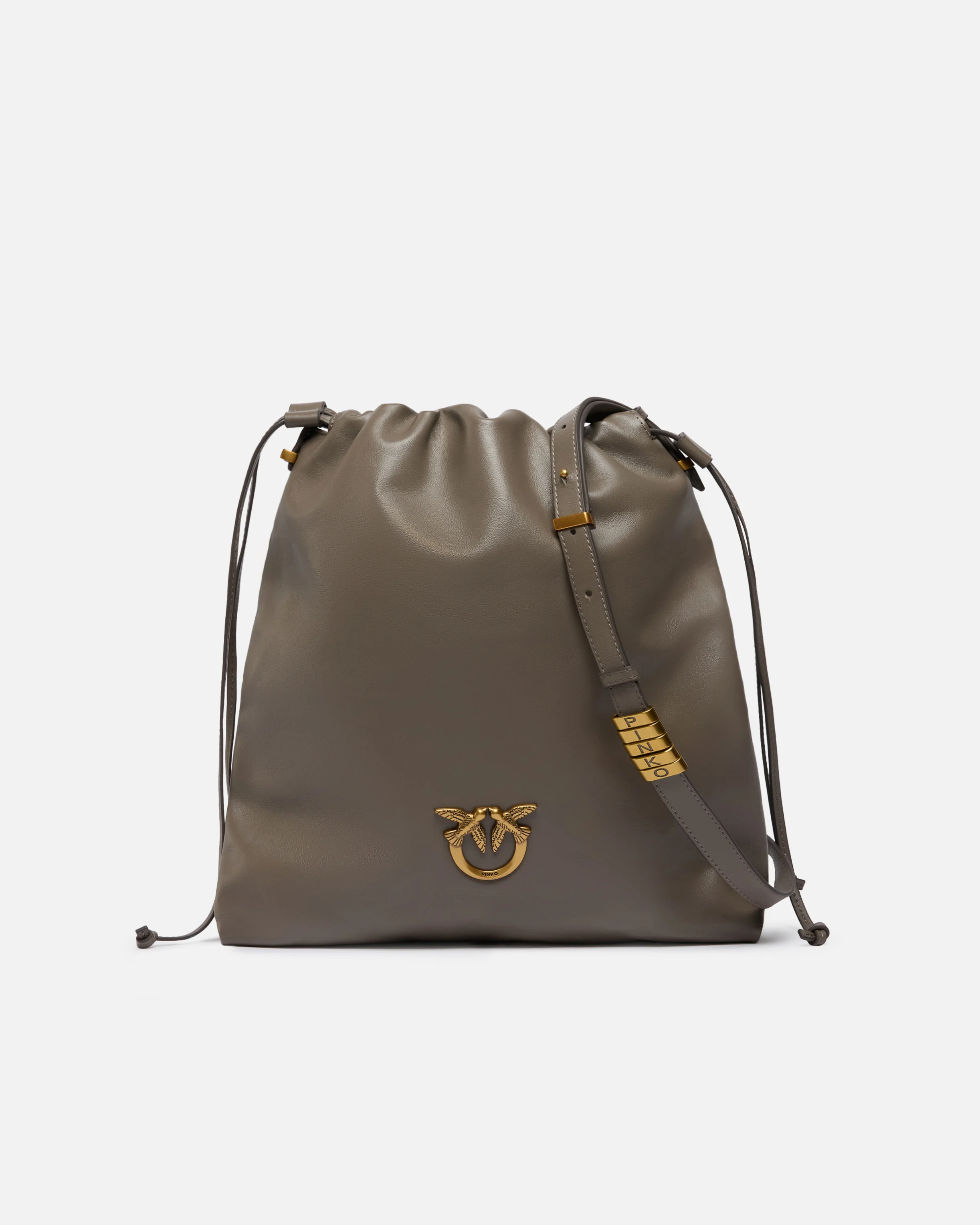 null − 104359A0QOK33Q00001 Leather Classic Slouchy Bag featuring a flat and vertical design with a cotton lining. A distinctive accessory that is perfect for endless looks, this bag has a drawstring and side zip to adjust the pouch-style fastening and an inner zip pocket to keep your essentials safe. The design is versatile thanks to the leather strap that allows you to wear it in various ways depending on your preferences. This accessory will give you a refined and on-trend look, while the iconic Love Birds logo embodies the inimitable PINKO style. Activate your PINKO bag: verify the authenticity of your product and access a personalised experience by scanning the Love Birds embroidery on the back of the bag with your smartphone! COMPOSITION Leather: CALF LEATHER 100% CALFSKIN LEATHER 100% - Lining: COTTON 100% - Accessory: Zinc 100% MEASUREMENTS - Height: 36 cm - Width: 3 cm - Length: 31 cm