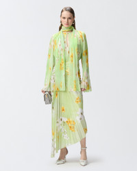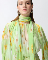 BUCERO BUCERO − 104711A2DHVGB Elegant women's blouse in light crepon fabric with fine pleating and a delicate floral pattern. The boxy shape of this shirt is emphasised by the long, wide and flared sleeves, and is complemented by a high collar with front keyhole opening and sash that can be tied into a bow or worn loose like an elegant scarf. Create an unforgettable head-to-toe look for special occasions by wearing this blouse with its matching skirt. COMPOSITION Outside Fabric: POLYESTER 100% - Lining: POLYESTER 100%