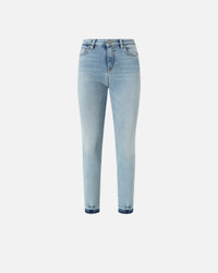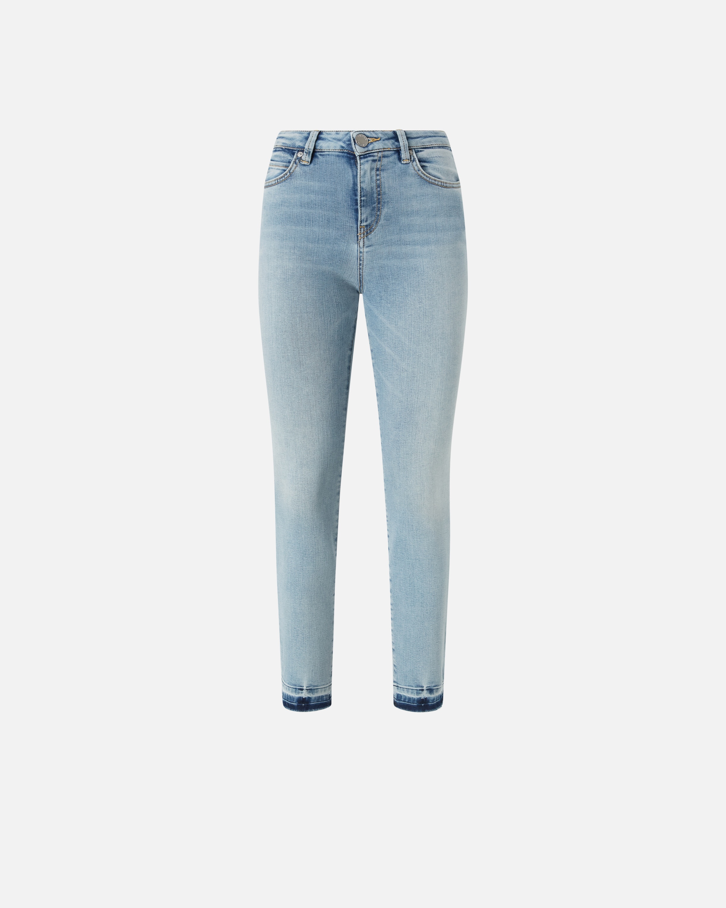 SABRINA SKINNY − 100169A2ELPJM Skinny jeans in stretch denim featuring a light vintage wash with reserve-treated leg bottoms, which creates a contrast of color, with raw-cut hem and slight fraying for a more authentic effect. The five-pocket model with a snug fit and high waist is made of an extremely stretchy cotton denim, which guarantees a perfect fit on any occasion. Zip closure and metal tack button. COMPOSITION Outside Fabric: COTTON 71% POLYESTER 18% VISCOSE 9% ELASTANE 2% - Lining: POLYESTER 65% COTTON 35%