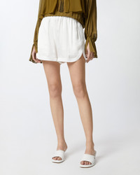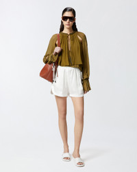 STAY WITH ME SHORTS − 104812A2FAZ05 Women's lightweight shorts in linen- and viscose-blend fabric with viscose twill edging, featuring a small slit at the bottom of the rounded legs. These shorts are a must-wear for summer, with an elastic waistband and in-seam side pockets for a comfortable, super-fresh feel on the skin. COMPOSITION 1° Outside Fabric: VISCOSE 73% LINEN 27% - 2° Outside Fabric: VISCOSE 100%