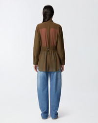NOW OVER SHIRT − 105017A2I9S1C Lightweight overshirt in linen and viscose with lightweight, semi-sheer-effect georgette back. This shacket features a pointed collar, small pockets and maxi patch pockets. The elastic insert at the waist, accentuated by gathered smocking, is accompanied by an adjustable drawstring to tighten or widen the jacket at the waist. Front button fastening. This special overshirt is ideal for getting out of the house on those early spring days. COMPOSITION 1° Outside Fabric: VISCOSE 73% LINEN 27% - 2° Outside Fabric: POLYESTER 100%