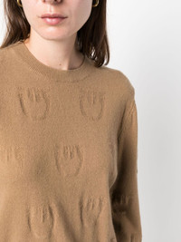 logo-debossed cashmere top camel brown cashmere fine knit all-over debossed logo print ribbed band collar crew neck long sleeves ribbed cuffs and hem Imported Composition Cashmere 100% SIZE & FIT Model measurements Height 5 ft 10 in(1.78 m) Bust/Chest 33.46 in(85 cm) Hips 36.22 in(92 cm) Waist 23.22 in(59 cm) FittingInformation Designed for a slim fit that sits just away from the body offering a close yet comfortable fit The ribbed hem offers a close, comfortable fit Made with a midweight knit, this piece offers some stretch This piece fits true to size – take your usual size Washing instructions Dry Clean Only