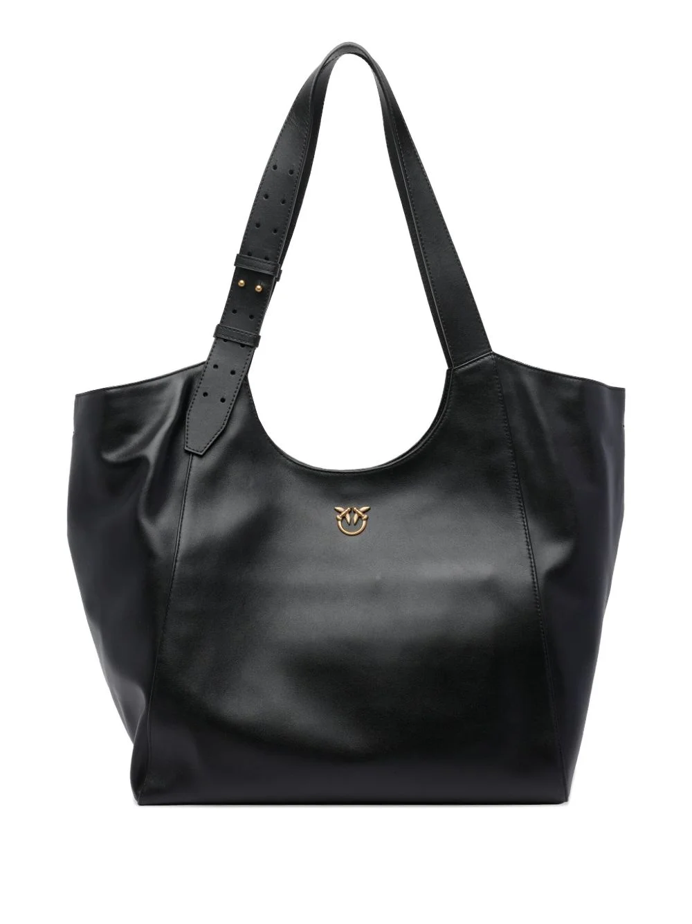 logo-detail leather shoulder bag Highlights - Black - Calf leather - Logo detail - Magnetic closure - Carabiner closure - Adjustable shoulder strap Imported Composition Calf Leather 100% SIZE & FIT Measurement DEPTH 7.48 in(19 cm) HEIGHT 13.38 in(34 cm) WIDTH 19.68 in(50 cm)