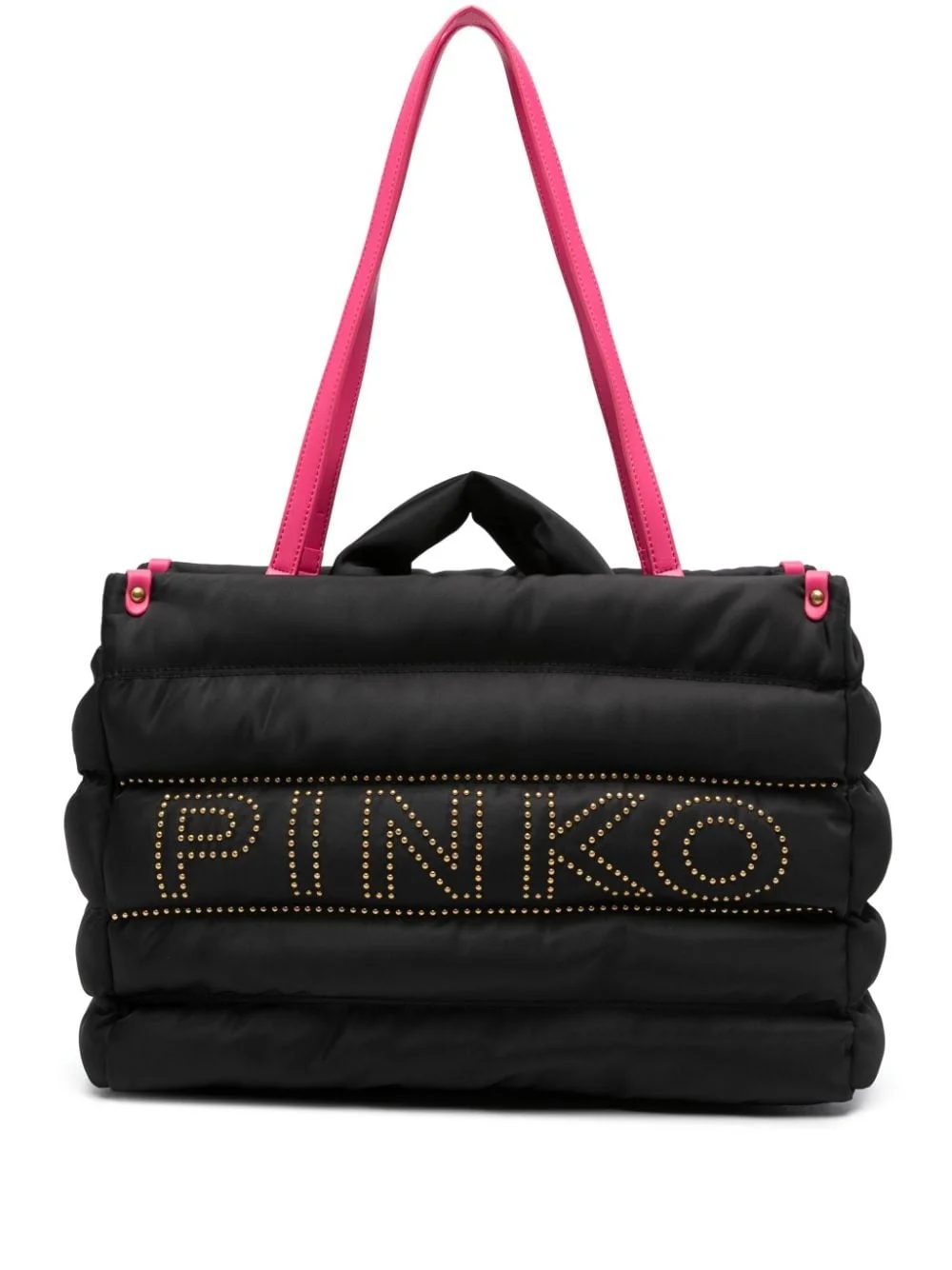 logo-embellished quilted tote bag Highlights - Jet black - Fuchsia pink - Quilted - Padded design - Gold-tone hardware - Studded logo detail - Embroidered logo to the rear - Hook fastening - Two flat shoulder straps - Two top handles - Main compartment - Internal logo patch - Internal zip-fastening pocket Imported Composition Outer: Polyester 100% Lining: Polyester 100% SIZE & FIT Model measurements Height 5 ft 11 in(1.8 m) Bust/Chest 31.49 in(80 cm) Hips 36.22 in(92 cm) Waist 25.59 in(65 cm) Measurement DEPTH 4.72 in(12 cm) HANDLE 1.18 in(3 cm) HEIGHT 10.23 in(26 cm) STRAP 10.62 in(27 cm) WIDTH 15.74 in(40 cm)