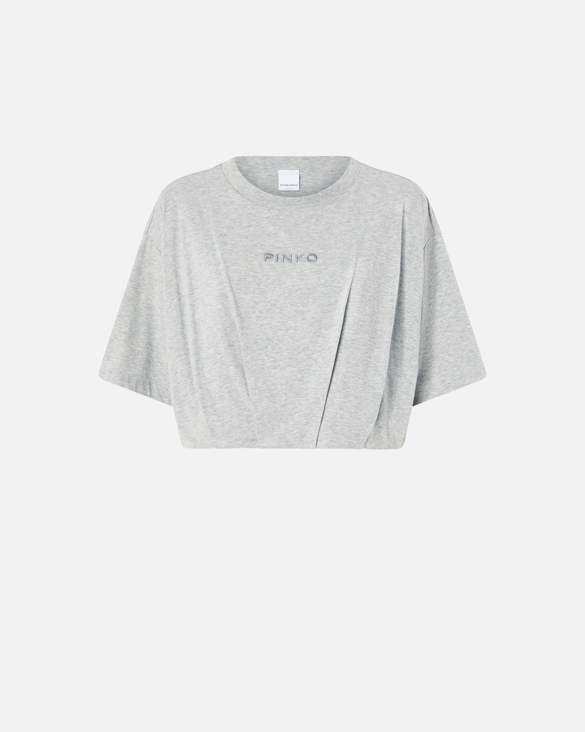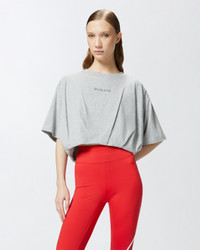 TORRONE T-SHIRT − 104257A2F8I42 Cropped sweater with short sleeves made of soft pure cotton jersey, characterized by large volume and personalized with mini PINKO logo embroidery on the front. The volume of the t-shirt and its short cut, at the navel, are enhanced by a slight pleat pattern at the bottom. This sweater will be the most versatile garment you will have in your spring wardrobe, to be worn even with sports leggings for a dynamic and cool style. COMPOSITION 1° Outside Fabric: COTTON 100% - 2° Outside Fabric: COTTON 100% - Lining: COTTON 100% - : POLYESTER 100%
