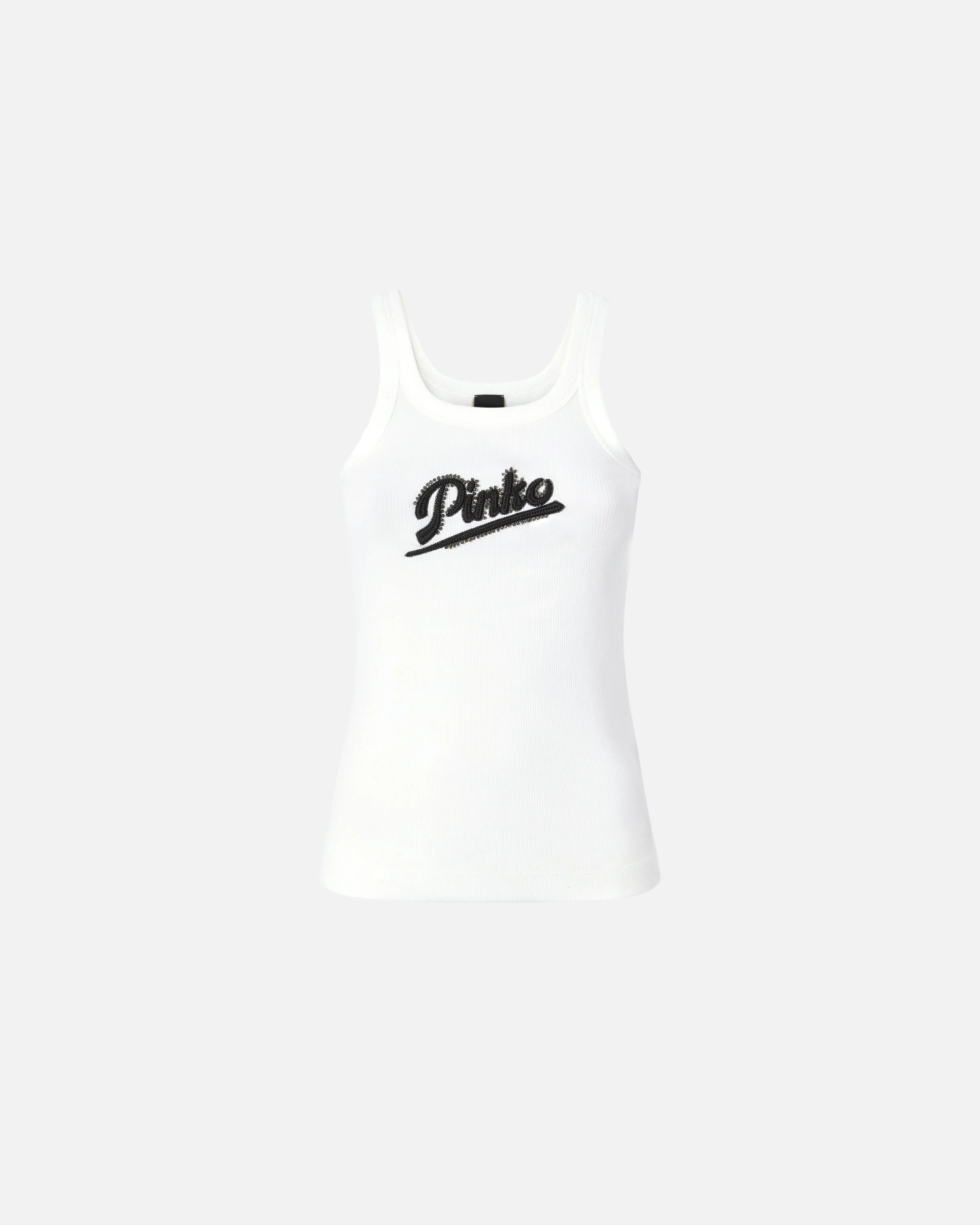 VEST TOP WITH PINKO EMBROIDERY AND RHINESTONES