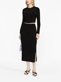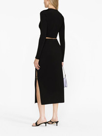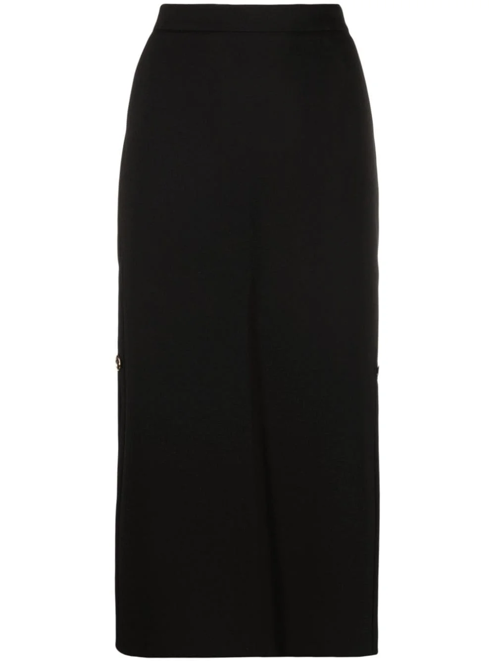 logo-engraved button high-waisted skirt Highlights - Black - Stretch-design - Logo-engraved buttons - Signature love birds logo - High-waisted - Concealed rear zip fastening - Two side slash pockets - Side slit - Mid-length Imported Composition Viscose 67% Outer: Polyamide 28%, Spandex/Elastane 5% Lining: Acetate 68%, Polyester 32% SIZE & FIT Model measurements Height 5 ft 9 in(1.75 m) Bust/Chest 31.49 in(80 cm) Hips 34.05 in(86.5 cm) Waist 24.21 in(61.5 cm) FittingInformation This maxi-length skirt is intended to be worn high on the waist Made from a midweight stretch fabric, this piece offers elasticity and flexibility when worn This piece fits true to size – take your usual size Washing instructions Machine Wash