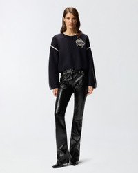 ALICUDI KNITWEAR − 105397A2PKEZ1 Long-sleeved crew-neck sweater in merino wool: a soft and lightweight yarn for an original wardrobe. Make your looks unique with this design embellished with the PINKO lettering logo inside heart-shaped embroidery, filled with shiny rhinestones. The contrasting yarn on the neckline, sleeves and armholes adds a touch of vibrancy to the design, while the final touch is given by the tone-on-tone label with PINKO lettering logo on the back of the neck. The piece has undergone finishing tests to minimise the possible formation of pilling, ensuring greater fabric softness and durability. COMPOSITION Outer Yarn: WOOL 100% - : POLYESTER 54% POLYAMMIDE 20% POLYAMIDE 20% ACRYLIC 20% WOOL 6% - : Glass 100% - : STEEL 100%