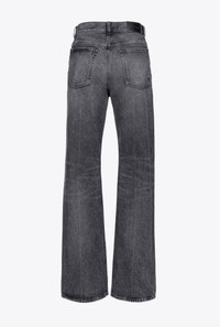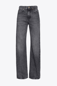 Five-pocket wide-leg jeans in vintage denim with dark grey wash. Low waist with belt loops and a straight, wide leg. Metal zip and tack-button fastening. COMPOSITION Outside Fabric: COTTON 100% - Lining: POLYESTER 65% COTTON 35%