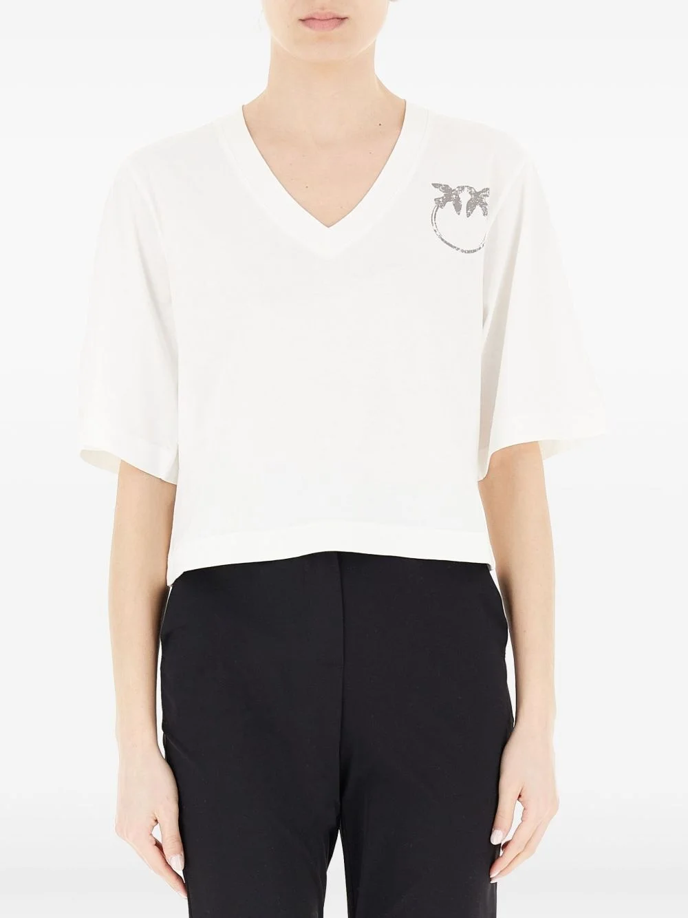 cotton T-shirt Highlights - White - V-neck - Short sleeves - Logo print at the chest Imported Composition Cotton 100% SIZE & FIT FittingInformation Designed to be unstructured, offering a loose fit throughout Made from a midweight non-stretch fabric, this piece offers minimal elasticity when worn