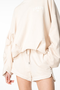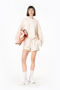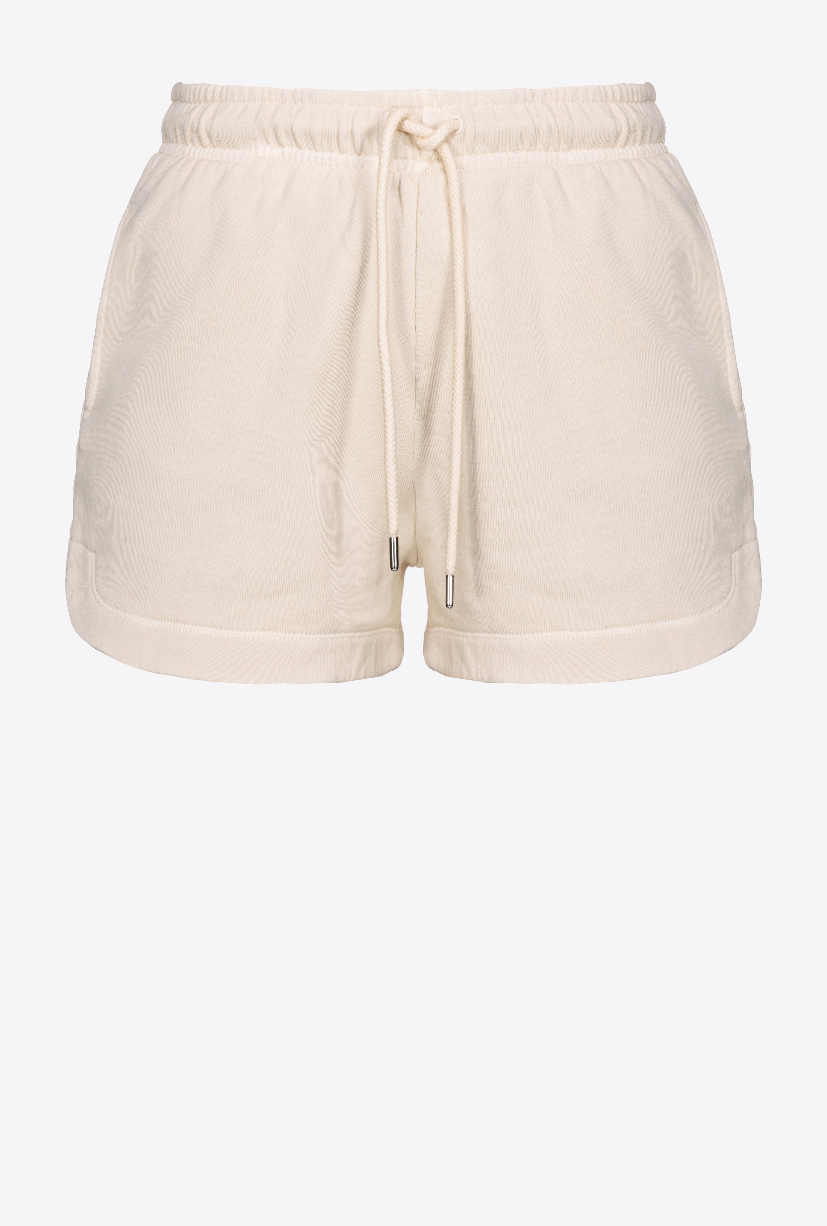 Shorts in cotton fleece with a striking, almost aged-effect dyed finish and PINKO logo print on the back. Elasticated waist with metal-tipped drawstring and in-seam side pockets. COMPOSITION Outside Fabric: COTTON 100% - Lining: COTTON 100%