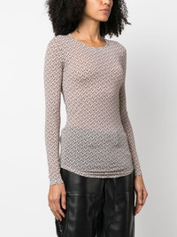 logo-print semi-sheer sweatshirt Highlights - White/black - Stretch-design - All-over logo print - Semi-sheer construction - Crew neck - Long sleeves - Straight hem Made in Italy Composition Polyamide 90%, Spandex/Elastane 10% SIZE & FIT Model measurements Height 5 ft 10 in(1.78 m) Bust/Chest 33.07 in(84 cm) Hips 36.61 in(93 cm) Waist 24.8 in(63 cm) FittingInformation Designed for a close fit throughout Made from a lightweight stretch fabric, this piece offers elasticity and flexibility when worn This piece fits true to size – take your usual size Washing instructions Machine Wash