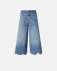 BURKINA BERMUDA − 104646A2RUPJV Long 70s-inspired five-pocket shorts with a wide leg and manually frayed hem for a distressed finish, made from non-stretch cotton denim with a stonewash with to create colour contrasts. The brand's lettering logo embroidered on the back of the waistband, the Love Birds logo with embroidered birds on the right back pocket and the detachable belt loop with Love Birds logo add pure PINKO style to the design. Wear these denim shorts with a pair of high boots for a striking look even in winter. Mid-rise with belt loops and a zip and button fastening. COMPOSITION Outside Fabric: COTTON 100% - Lining: POLYESTER 65% COTTON 35%