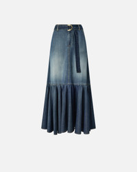 LONG DENIM SKIRT WITH FLOUNCE AND BELT