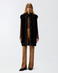 GENOVESE GILET − 105402A2PIZ99 Long, straight-cut gilet featuring rib-knit details on the stand-up collar, hidden front fastening and armholes. This piece is made from soft Aspen fabric with a fur effect, which is particularly pleasant to the touch. This outerwear is ideal for wearing on cooler early-season days in the open air with maximum comfort without sacrificing a touch of style. COMPOSITION Outside Fabric: POLYESTER 100% - Accessory Yarn: POLYESTER 70% WOOL 30% - Lining: POLYESTER 100%