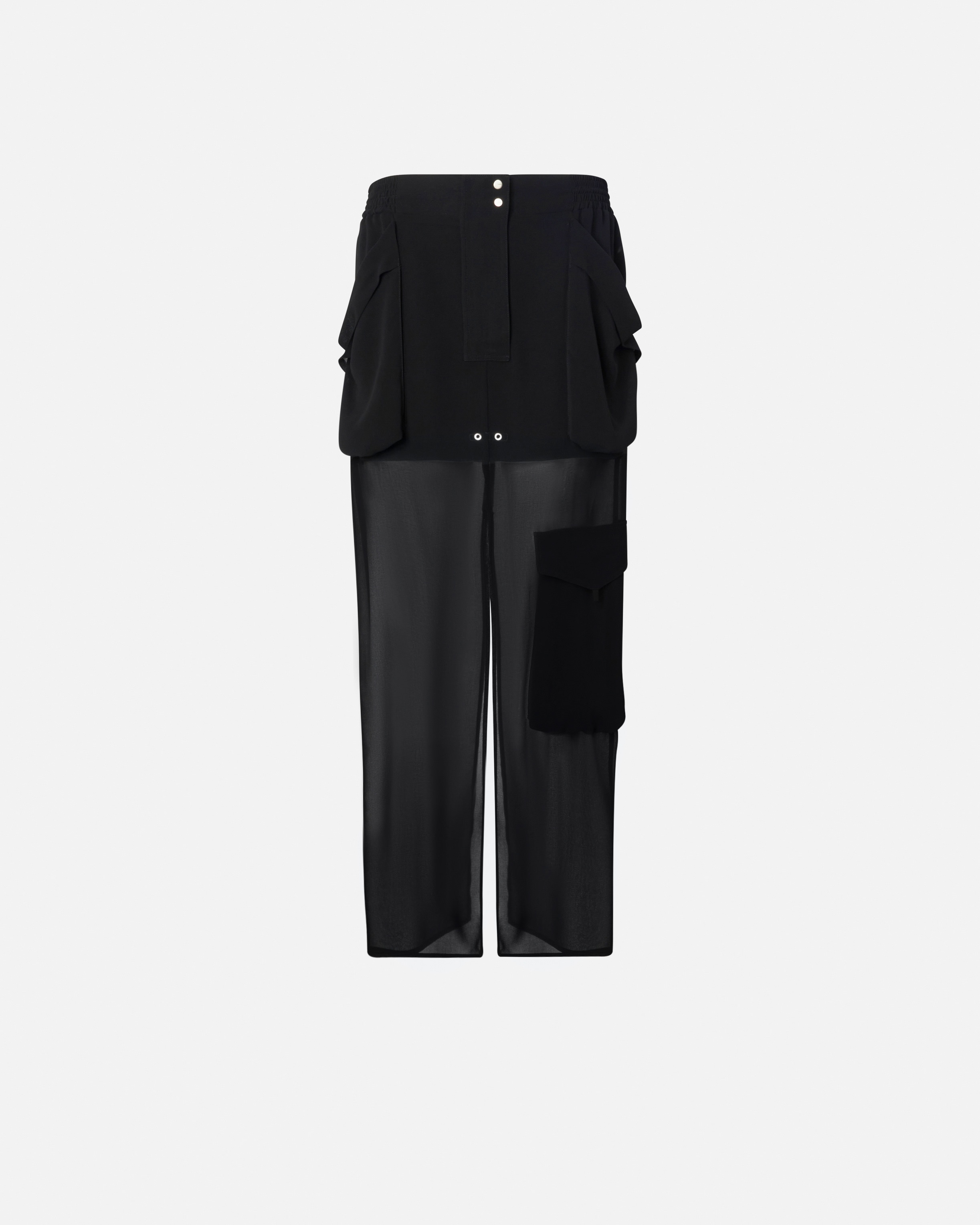 INSTEAD NO SKIRT − 104789A21FZ99 Long day skirt in light georgette characterized by cargo silhouette with maxi patch pockets that recall the utility style. The straight-cut skirt is defined with a double central slit at the hem, both front and back, which adds a feminine detail and personalizes the movement. This garment is completed by an elastic and drawstring inserted at the waist, adjustable with a tip on the back, to ensure a comfortable fit and a perfect fit. Zip closure concealed by flap and double metal button at the waist. The skirt with cargo pockets is the ideal mix of femininity and style: wear it with both flat shoes and heels, to customize your look! COMPOSITION Outside Fabric: POLYESTER 100%