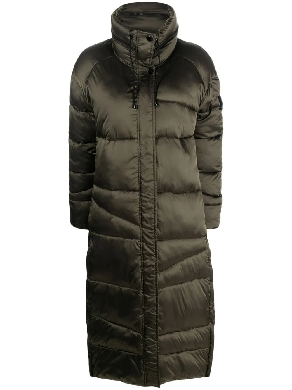long puffer coat PINKO brings a contemporary take on the classic puffer coat with this design. Crafted in an olive-green colourway, it’s framed by a drawstring funnel neckline and accented with side zips. Highlights - Olive green - Padded design - Drawstring neck - Funnel neck - Front press-stud and zip fastening - Long sleeves - Side zips - Two side slit pockets - Straight hem - Calf-length Imported Composition Outer: Polyester 56%, Polyamide 44% Lining: Polyamide 100%, Polyester 100% SIZE & FIT Model measurements Height 5 ft 11 in(1.8 m) Bust/Chest 31.88 in(81 cm) Hips 35.03 in(89 cm) Waist 24.01 in(61 cm) FittingInformation Designed to be unstructured, offering a loose fit throughout Made from a padded non-stretch fabric, giving it no natural elasticity This piece fits true to size – take your usual size Washing instructions Machine Wash