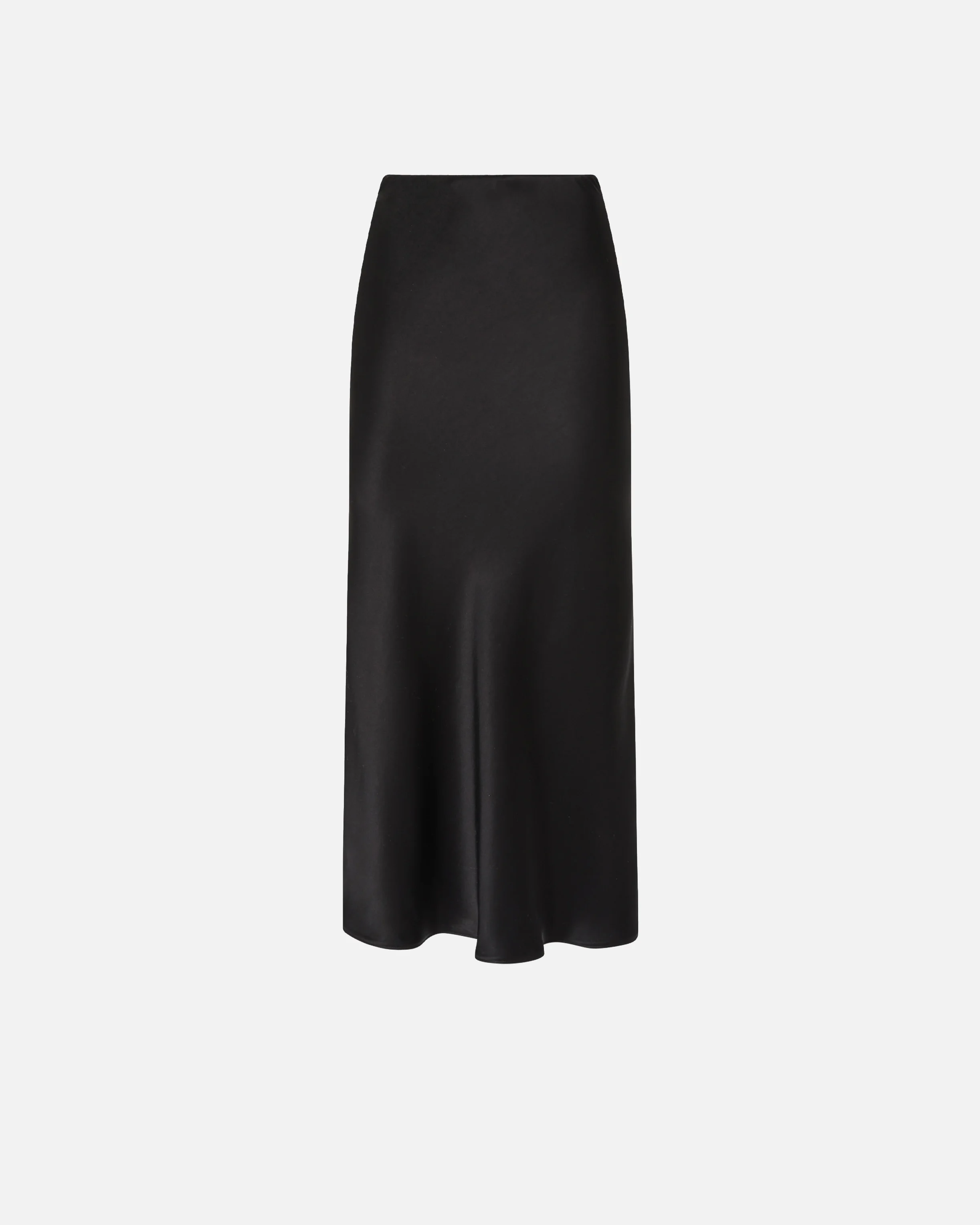 DIGNA SKIRT − 106075A1Y5Z99 Long satin skirt with a fluid and slightly flared silhouette, with a high waist and a soft fall to the ankle. The smooth and shiny surface of the fabric gives the garment an essential and sophisticated elegance, perfect for enhancing every movement. Wear it with a fitted top and minimal sandals for a refined and timeless look. COMPOSITION Outside Fabric: ACETATE 91% POLYESTER 9%