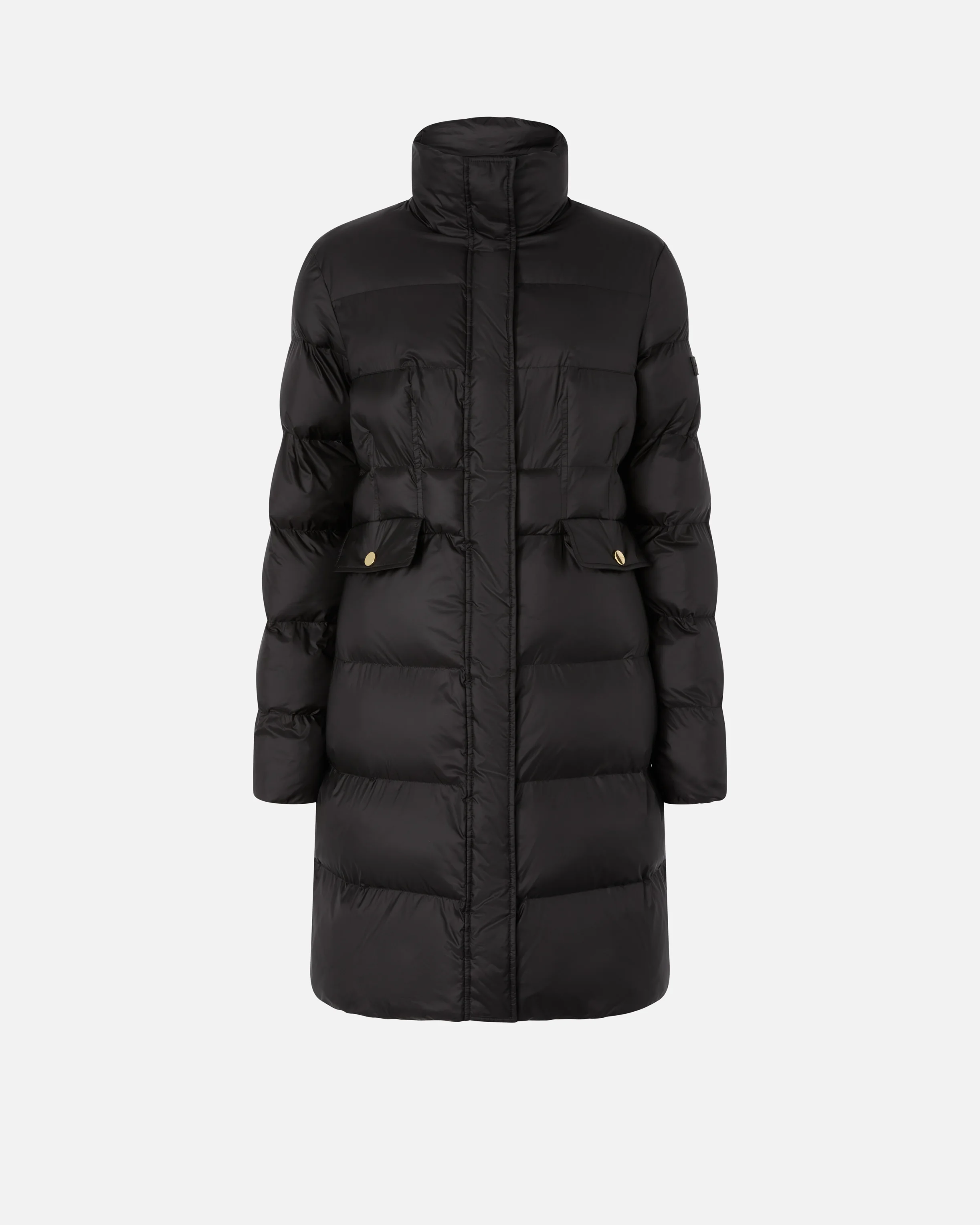 USOA DOWN JACKET − 106016A2ZBZ99 Long padded down jacket with horizontal quilting, made from technical canvas with a striking semi-glossy effect. This item features an enveloping high neck, concealed front fastening and practical side pockets with a flap and press stud. An outerwear piece that combines functionality and style, this down jacket is ideal to wear for everyday engagements, including when the cold weather begins to set in. COMPOSITION Outside Fabric: POLYAMMIDE 100% POLYAMIDE 100% - Body lining: POLYAMMIDE 100% POLYAMIDE 100% - Sleeve lining: POLYESTER 100% - Padding: POLYESTER 100%