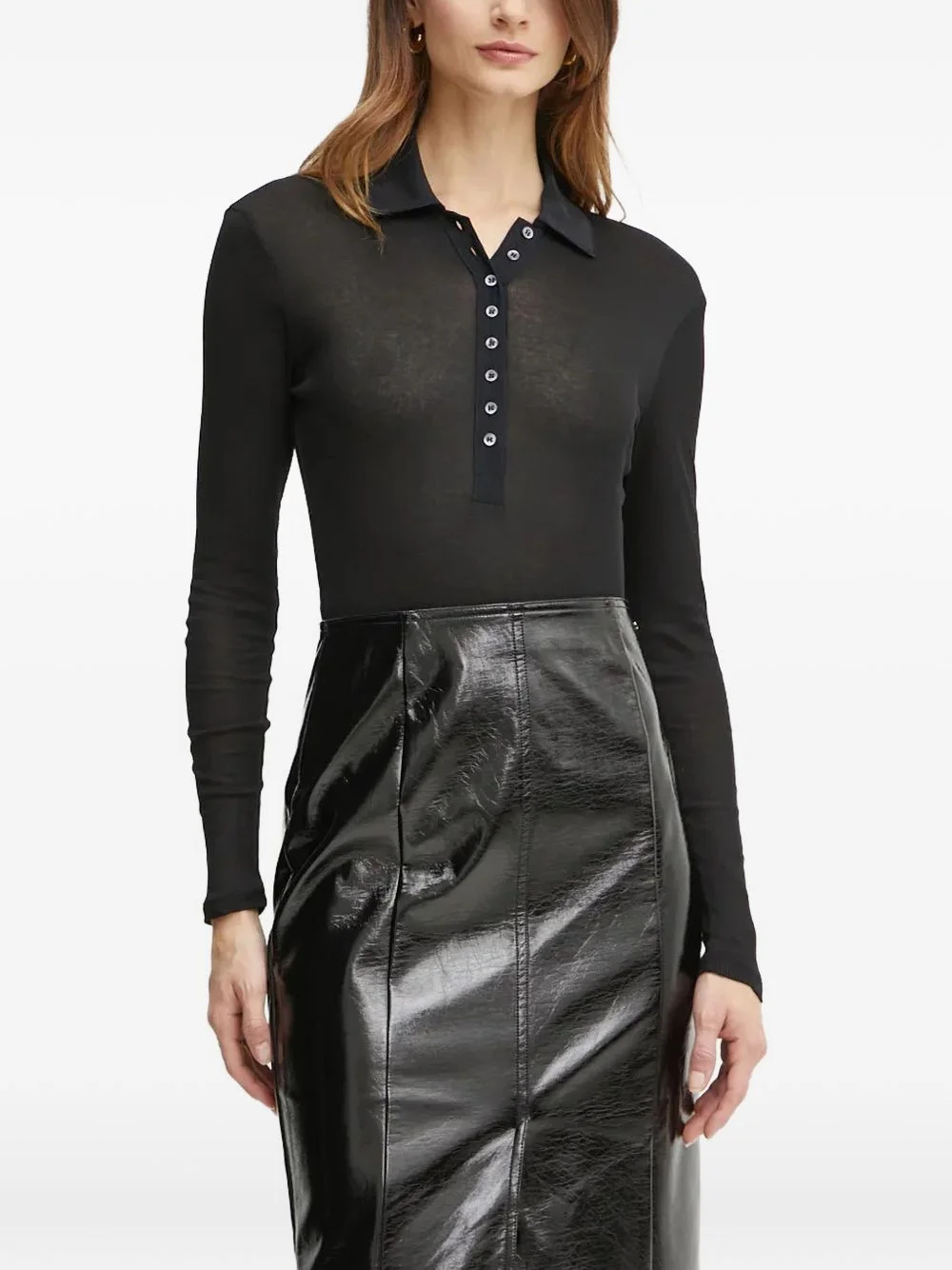 long-sleeve polo-collar body Highlights - Black - Ribbed knit - Front button fastening - Long sleeves Imported Composition Fabric 100% Washing instructions Read Manufacturer Guidelines