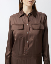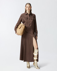 AQUILONE DRESS − 104243A24VM19 Long shirt dress in glossy, lightweight washed satin fabric. Straight-cut piece with shirt collar, long sleeves with cuff and two pockets with flap at the front. The ankle-length skirt has two front slits. Button fastening from the collar to the waist at the front. COMPOSITION Outside Fabric: ACETATE 91% POLYESTER 9% - Lining: POLYESTER 100% - : ACETATE 100%