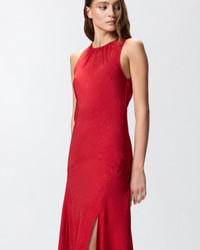 AGNOLOTTO DRESS − 105711A2PXRA1 Long, sleeveless dress with a flounced hem and a drawstring-adjustable round-neck that opens into a vertical cut-out on the back. The garment is made from viscose jacquard and the texture is customised with a Love Birds logo motif. The dress features a loose fit, highlighted even further by the layer of external see-through-effect fabric that provides a glimpse of the motif below. Wear it every day to get practicality and femininity in one piece that can be worn from the office to after-work drinks. COMPOSITION Outside Fabric: VISCOSE 100%