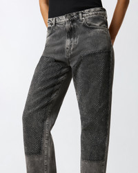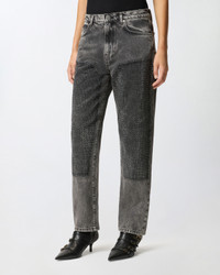 ROSE STRAIGHT − 104635A2W4PJ9 Loose-fit five-pocket jeans with a relaxed workwear-inspired feel. The piece is made from black non-stretch cotton denim with a stonewash for a faded effect and reserve-dyed patches that create contrasting areas, further embellished by faceted mini studs. The label with Love Birds logo heat-stamped on the back of the waistband customises the design in pure PINKO style. Mid-rise with belt loops and a zip and button fastening. Pair with the matching jacket to create a total look that won't go unnoticed. This model is a little wider than the usual size. COMPOSITION Outside Fabric: COTTON 100% - Lining: POLYESTER 65% COTTON 35% - : Glass 100%