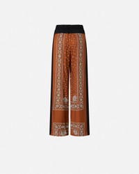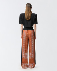 SPIRITO PANTALONE − 104663A2CKLZ3 Wide-leg long trousers in fluid viscose twill customised with an all-over bandana print, while the upper part is made of single-colour viscose georgette, to create a contrasting effect. The long trousers are characterized by an elasticated waist and belt loops, a relaxed crotch and a straight, wide leg, emphasized by the lightness of the fabric. Zip and button closure at the waist. These printed trousers are perfect for an everyday summer look, to be completed with a short-sleeved t-shirt for an effortless chic touch. COMPOSITION 1° Outside Fabric: VISCOSE 100% - 2° Outside Fabric: VISCOSE 100% - Lining: VISCOSE 100%