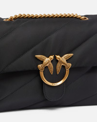 LOVE PUFF CLASSIC CL − 100038A05FZ99Q00001 Classic Extra Love Bag Puff in recycled-fibre fabric with diagonal maxi quilting and shoulder strap. Flap fastening accompanied by an antique gold-electroplated Love Birds Diamond Cut buckle. Inside, it has recycled polycotton lining, a handy zipped divider pocket and an additional buttoned compartment. The sliding metal chain strap, with practical shoulder pad made from the same fabric as the bag, can be doubled and allows you to wear it crossbody or on the shoulder, as needed. Activate your PINKO bag: verify the authenticity of your product and access a personalised experience by scanning the Love Birds embroidery on the back of the bag with your smartphone! COMPOSITION Outside Fabric: POLYAMMIDE 100% POLYAMIDE 100% - Internal: POLYESTER 100% - : Zinc 100% MEASUREMENTS - Height: 20 cm - Width: 10 cm - Length: 27 cm