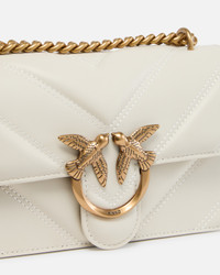 LOVE ONE MINI LIGHT DC − 104550A26ZZ14Q00001 Love Bag crossbody bag in nappa leather with raised inlay that creates a chevron-patterned quilted effect. Thanks to the practical sliding shoulder strap with adjustable leather shoulder pad, this small crossbody bag can be worn crossbody or on the shoulder when doubled. The accessory features a cotton drill-lined interior and a zipped slip pocket. The bag has a semi-rigid structure, making it suitable for a whole host of occasions, and the buckle with custom Love Birds logo adds an iconic touch to one of the flagship models of the new collection. Activate your PINKO bag: verify the authenticity of your product and access a personalised experience by scanning the Love Birds embroidery on the back of the bag with your smartphone! COMPOSITION Leather: SHEEP LEATHER 100% SHEEPSKIN LEATHER 100% - Outside Fabric: COWHIDE 100% BOVINE SKIN 100% - 1° Outside Fabric: POLYAMMIDE 50% POLYAMIDE 50% POLYURETHANE 50% - Lining: COTTON 100% MEASUREMENTS - Height: 14 cm - Width: 7 cm - Length: 22 cm