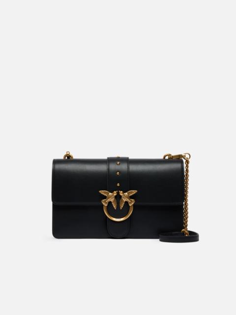 null − 105857A0F1Z99Q00001 Love Bag One medium handbag in silky leather. Featuring an adjustable and removable leather and chain shoulder strap, this piece is very versatile and practical. The strap fastening with magnetic button is accompanied by a buckle with the Love Birds Diamond Cut logo and small metal studs. The cotton-lined interior features a zipped pocket to keep your essentials safe. Activate your PINKO bag: verify the authenticity of your product and access a personalised experience by scanning the Love Birds embroidery on the back of the bag with your smartphone! COMPOSITION Leather: COWHIDE 100% BOVINE SKIN 100% - Lining: COTTON 100% - : POLYAMMIDE 50% POLYAMIDE 50% POLYURETHANE 50% MEASUREMENTS - Height: 15 cm - Width: 7 cm - Length: 27 cm