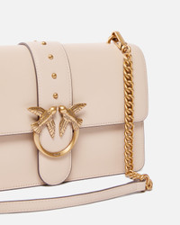null − 105857A0F1C50Q00001 Love Bag One medium handbag in silky leather. Featuring an adjustable and removable leather and chain shoulder strap, this piece is very versatile and practical. The strap fastening with magnetic button is accompanied by a buckle with the Love Birds Diamond Cut logo and small metal studs. The cotton-lined interior features a zipped pocket to keep your essentials safe. Activate your PINKO bag: verify the authenticity of your product and access a personalised experience by scanning the Love Birds embroidery on the back of the bag with your smartphone! COMPOSITION Leather: COWHIDE 100% BOVINE SKIN 100% - Lining: COTTON 100% - : POLYAMMIDE 50% POLYAMIDE 50% POLYURETHANE 50% MEASUREMENTS - Height: 15 cm - Width: 7 cm - Length: 27 cm