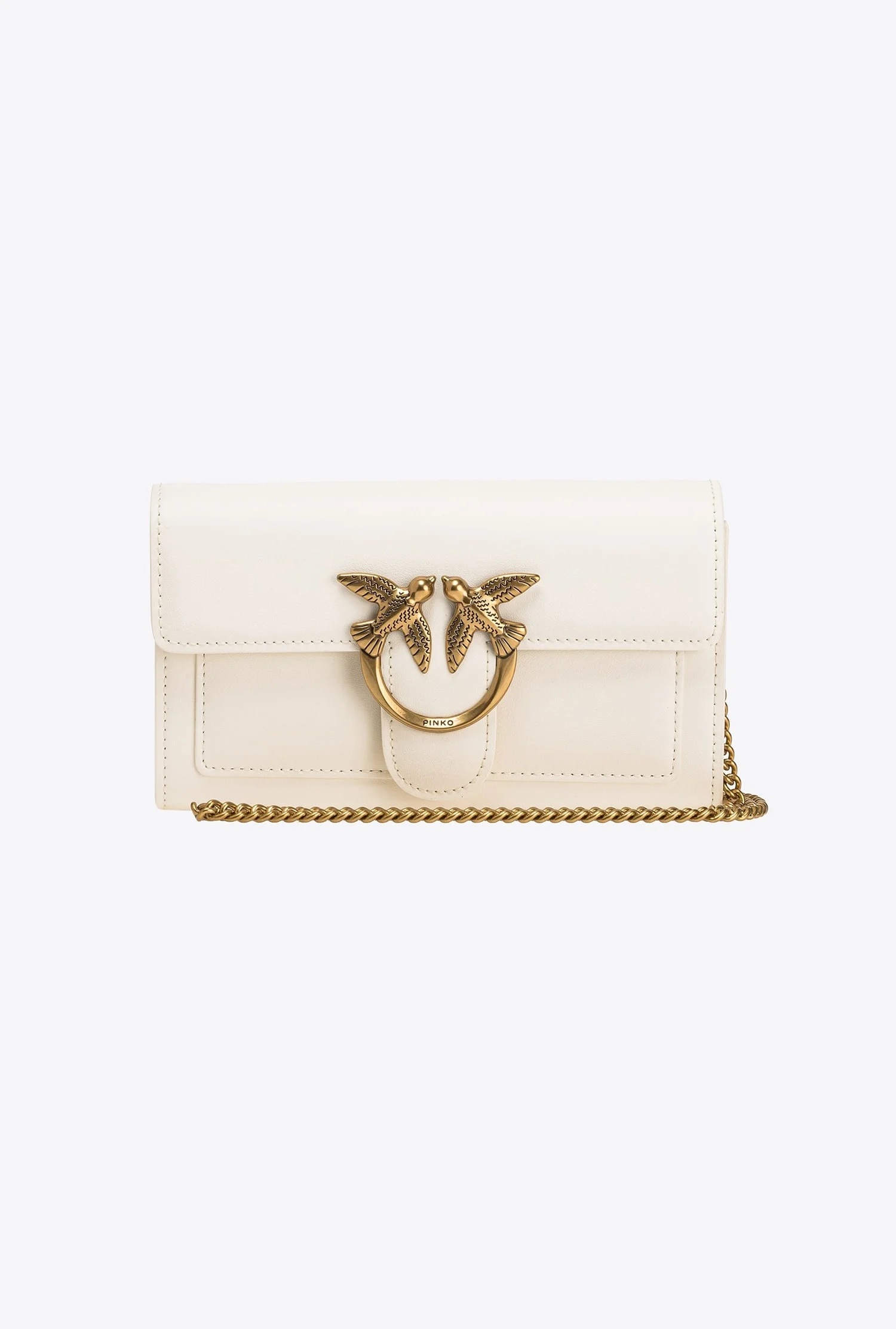 LOVE ONE WALLET C − 100062A0F1Z14Q00001 Love Bag Wallet with shoulder strap in soft, silky leather. The concealed-button fastening is embellished by the iconic Love Birds Diamond Cut buckle. The polycotton-lined interior is divided into four compartments, one of which is zipped and two of which have card slots. The removable, round-link metal-chain shoulder strap allows you to wear the purse like a crossbody bag. COMPOSITION Outside Fabric: COWHIDE 92% BOVINE SKIN 92% POLYURETHANE 8% - 1° Outside Fabric: POLYAMMIDE 60% POLYAMIDE 60% POLYURETHANE 40% - Lining: POLYESTER 100% MEASUREMENTS - Height: 10 cm - Width: 4 cm - Length: 19 cm
