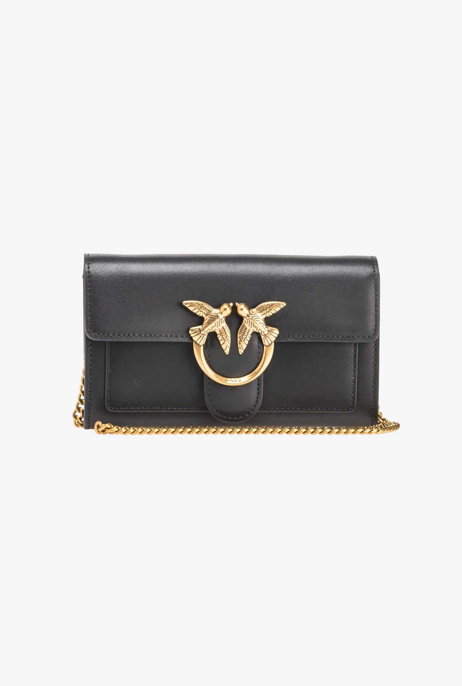 LOVE ONE WALLET C − 100062A0F1Z99Q00001 Love Bag Wallet with shoulder strap in soft, silky leather. The concealed-button fastening is embellished by the iconic Love Birds Diamond Cut buckle. The polycotton-lined interior is divided into four compartments, one of which is zipped and two of which have card slots. The removable, round-link metal-chain shoulder strap allows you to wear the purse like a crossbody bag. COMPOSITION Outside Fabric: COWHIDE 92% BOVINE SKIN 92% POLYURETHANE 8% - 1° Outside Fabric: POLYAMMIDE 60% POLYAMIDE 60% POLYURETHANE 40% - Lining: POLYESTER 100% MEASUREMENTS - Height: 10 cm - Width: 4 cm - Length: 19 cm