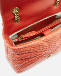 LOVE PUFF MINI CL − 100039A2C8B00Q00001 Mini Love Bag Puff small day shoulder bag made of raffia with quilting featuring a butterfly design on the front. The flap and snap button closure is completed by the iconic Love Birds Diamond Cut metal buckle in gold metal. The inside of the handbag includes a practical partition closed with zip and wall pocket, and is lined in cotton. The bag comes complete with a shoulder strap, which combines the classic round metal chain with the practical leather shoulder strap. The sliding chain can be doubled to wear the mini bag both crossbody and shoulder. Activate your PINKO bag: check the authenticity of your product and access the personalized experience by bringing your smartphone close to the Love Birds embroidery on the back of the bag! COMPOSITION 1° Outside Fabric: POLYPROPYLENE 80% POLYPROPYL 80% POLYESTER 20% - : POLYESTER 50% POLYURETHANE 50% - Internal: COTTON 100% - Accessory Item: Zinc 100% MEASUREMENTS - Height: 15 cm - Width: 10 cm - Length: 22 cm