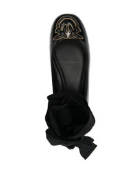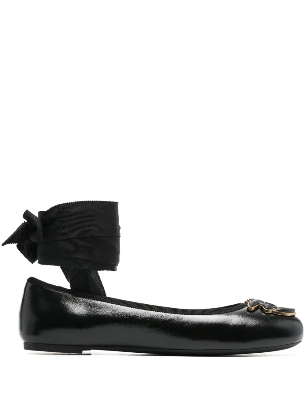 Love Birds ballerina shoes Highlights - Black - Calf leather - Grained texture - Almond toe - Signature love birds buckle - Branded leather insole - Leather lining - Low stacked heel - Rubber outsole - Antique-effect hardware - Tie-fastening ankle strap - This piece comes complete with a protective dust bag. Made in Italy Composition Leather 100% SIZE & FIT Measurement HEEL 0.39 in(1 cm)