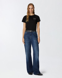 NAMBRONE T-SHIRT − 103320A24EZ99 Women's classic short-sleeved cotton jersey T-shirt with custom jewel-embroidered Love Birds logo on the left front side. The crystals and beads adorning the embroidery will add a touch of sparkle to your daytime looks. COMPOSITION 1° Outside Fabric: COTTON 100% - 2° Outside Fabric: COTTON 95% ELASTANE 5% - : Glass 100% - : copper 100% COPPER 100%