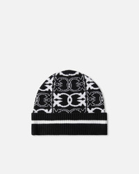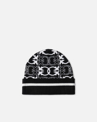 null − 105991A2YOZZ200001 Beanie in soft jacquard knit of wool and cashmere blend, worked with an all-over pattern with the iconic Love Birds logo that decorates the surface and gives a graphic touch; enveloping cap construction with a central seam, rounded elastic ribbed edge and high cuff that ensures a comfortable fit and protects from the cold; the fine fiber offers light warmth without being heavy, while the stockinette stitch workmanship maintains its shape use after use; wear it with an oversized down jacket and fleece joggers for a relaxed but recognizable outdoor look. COMPOSITION Outer Yarn: VISCOSE 33% POLYAMMIDE 23% POLYAMIDE 23% COTTON 20% WOOL 20% CASHMERE 4% MEASUREMENTS - Width: 23 cm - Length: 24 cm