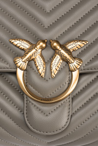 LOVE LADY PUFF BIG CL − 100042A0GKI68Q00001 Big Love Bag Puff in quilted nappa leather with chevron pattern. The fastening is embellished with the iconic metal Love Birds Diamond Cut buckle. The accessory boasts a microsuede-lined interior, complete with a zipped centre divider pocket and slip pocket. The shoulder strap combines the classic round metal chain with a practical, adjustable nappa leather pad. COMPOSITION Outside Fabric: COWHIDE 100% BOVINE SKIN 100% - 1° Outside Fabric: POLYAMMIDE 60% POLYAMIDE 60% POLYURETHANE 40% - Lining: COTTON 100% - Leather: SHEEP LEATHER 100% SHEEPSKIN LEATHER 100% MEASUREMENTS - Height: 22 cm - Width: 12 cm - Length: 31 cm