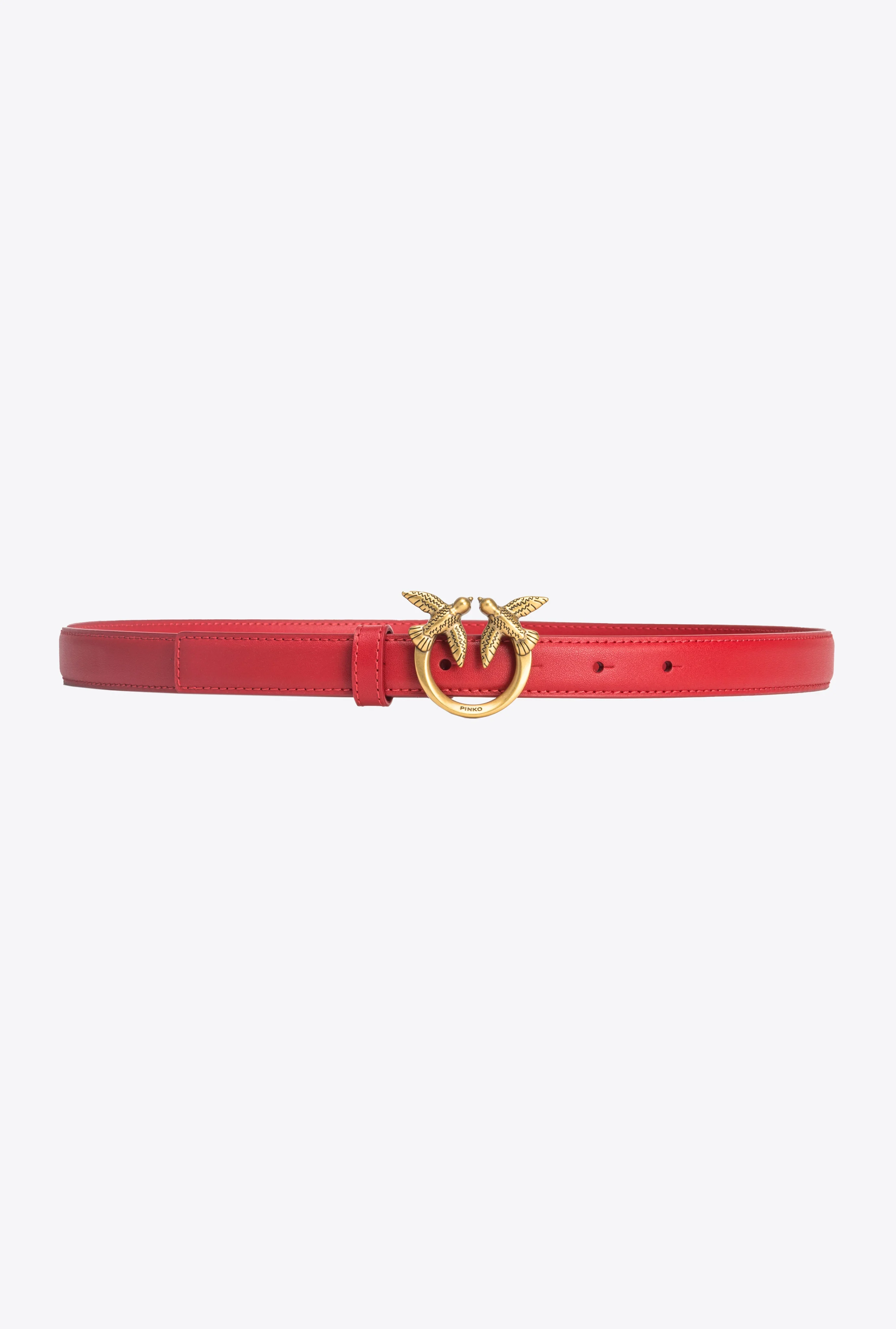 LOVE BERRY H2 BELT − 100143A0F1R30Q Thin belt in soft, silky leather, with metal Love Birds Diamond Cut buckle. COMPOSITION Leather: COWHIDE 100% BOVINE SKIN 100% - : Zinc 100% MEASUREMENTS - Height: 2 cm - Length: 92 cm