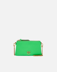 null − 105359A0QOU59Q00001 Clutch-style leather Mini Double Bag with a rectangular shape and a cotton lining. Complete with a small adjustable and removable leather shoulder strap and chain so it can be carried by hand, on the shoulder or crossbody, the bag is extremely versatile and practical, also thanks to the zips that divide it into two compartments. This accessory will give you a vibrant look, while the iconic Love Birds logo embodies the inimitable PINKO style. The contrasting ribs, clearly visible along the shoulder strap, attest to the craftsmanship of the product. Activate your PINKO bag: verify the authenticity of your product and access a personalised experience by scanning the Love Birds embroidery on the back of the bag with your smartphone! COMPOSITION Leather: CALF LEATHER 100% CALFSKIN LEATHER 100% - Lining: COTTON 100% - Accessory: Zinc 100% MEASUREMENTS - Height: 12 cm - Width: 3 cm - Length: 22 cm