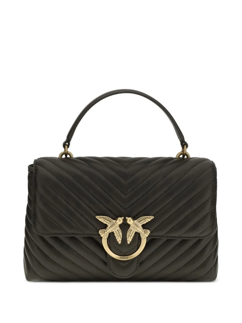 Love chevron tote bag Highlights - Dark olive green - Chevron quilting - Single top handle - Gold-tone hardware - Bird motif - Flap top fastening Imported Composition Outer: Sheepskin 100%, Calf Leather 100% Lining: Cotton 100% SIZE & FIT Measurement DEPTH 3.14 in(8 cm) HEIGHT 6.69 in(17 cm) WIDTH 9.84 in(25 cm)