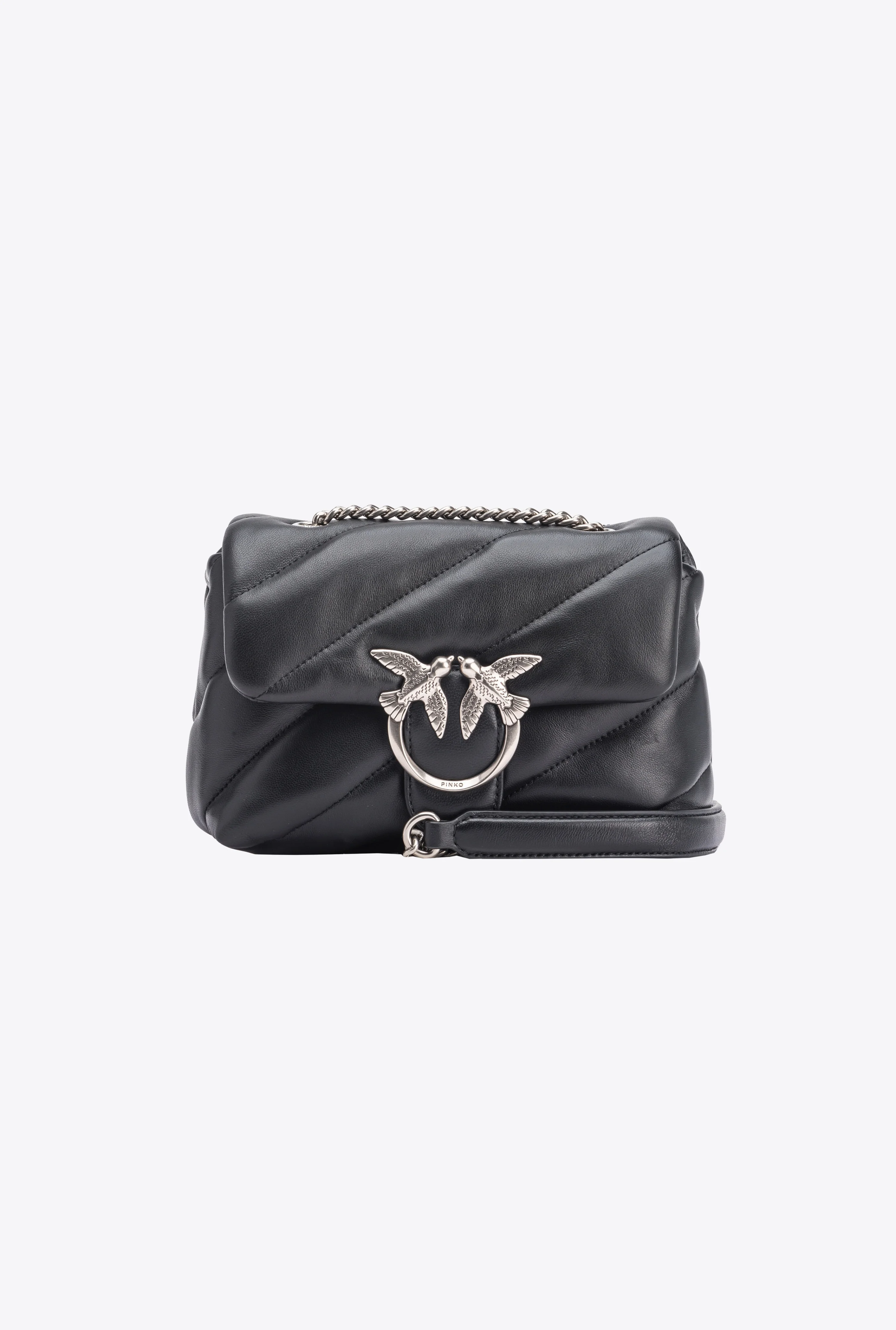 LOVE MINI PUFF CL − 100039A0F2Z99O00001 Mini Love Bag Puff in soft nappa leather featuring maxi slanted quilting. The fastening is embellished with the iconic metal Love Birds Diamond Cut buckle. The accessory boasts a microsuede-lined interior, complete with a zipped centre divider pocket and slip pocket. The shoulder strap combines the classic round metal chain with a practical nappa leather shoulder pad. COMPOSITION Leather: SHEEP LEATHER 100% SHEEPSKIN LEATHER 100% - Accessory: Zinc 100% - Lining: COTTON 100% MEASUREMENTS - Height: 15 cm - Width: 9 cm - Length: 21 cm